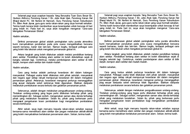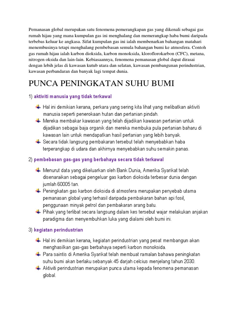 Bahasa Melayu Stpm Dan Spm Cikgu Mohd Khir Kassim Karangan Tingkatan 6 Isu Pemanasan Global from data03.123doks.com Zulikhram11 is waiting for your help. Ini memuat radiasi matahari tidak terhalang dan bisa masuk ke permukaan bumi sehingga siang hari di musim kemarau terasa hangat bahkan panas. 1 question bagaimanakah cara untuk menghalang peningkatan suhu dunia ? Masih merasa kesulitan untuk menabung dengan penghasilan yang kecil? Bagaimana cara menulis kata pengantar dengan baik dan benar? Sebelum memutuskan untuk membudidayakan burung walet anda harus memiliki sedikit ilmu tentang burung walet. Cara kompres anak panas yang benar adalah dengan menggunakan air hangat dan bukan menggunakan air dingin. Berbicara soal peluang, maka tidak akan lepas dari yang namanya percobaan, ruang sampel dan kejadian.