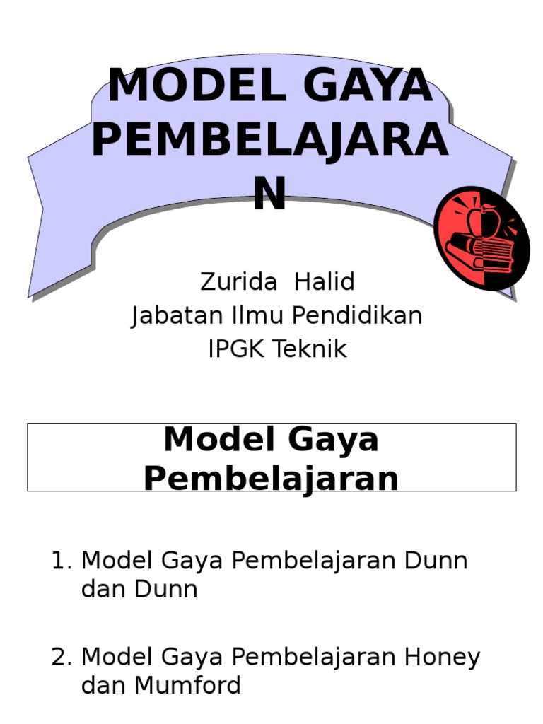 Gaya pembelajaran dunn & dunn model gaya pembelajaran. Beberapa kajian telah dibuat untuk menpertingkatkan proses dan prestasi belajar pelajar. Cara seseorang individu menumpukan perhatiannya untuk memahami dan mengingati sesuatu maklumat atau kemahiran. Gaya pembelajaran adalah pendekatan untuk belajar(study) dan pembelajaran(learn). Model gaya pembelajaran honey & mumford.